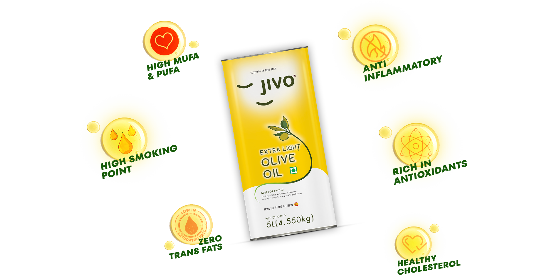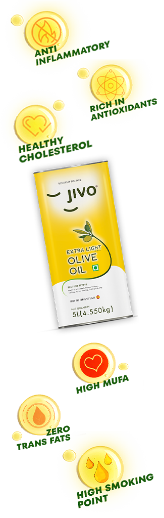 Jivo's Extra Light Olive Oil offers several skin benefits thanks to its high vitamin E and antioxidant content. Vitamin E helps to moisturize and protect the skin, maintaining its elasticity and reducing the appearance of fine lines and wrinkles. The monounsaturated fats in this olive oil support skin hydration from within, making it look soft and radiant. Plus, its antioxidants combat free radicals, helping reduce inflammation and keeping the skin looking clear and healthy. Regularly including Jivo’s Extra Light Olive Oil in your diet can promote glowing, nourished skin.
