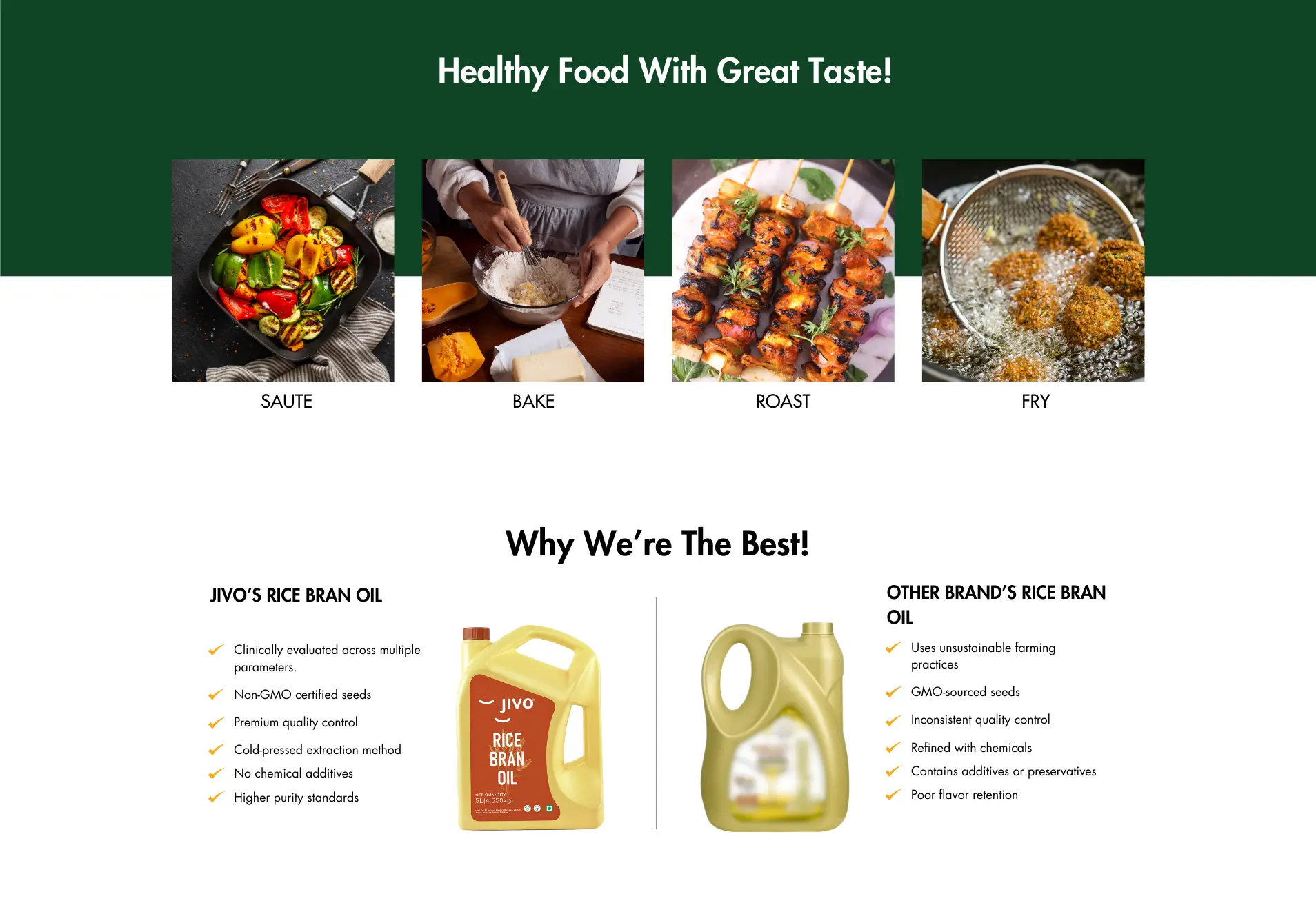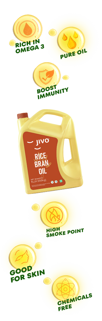 Jivo's Rice Bran Oil supports heart health due to its unique composition of healthy fats, including monounsaturated and polyunsaturated fatty acids, which help reduce LDL (bad) cholesterol levels and promote the increase of HDL (good) cholesterol. It is also rich in oryzanol, a powerful antioxidant that helps reduce cholesterol absorption in the body. Additionally, rice bran oil has a high smoke point, making it ideal for cooking at high temperatures without forming harmful compounds. Incorporating Jivo’s Rice Bran Oil into your diet can help maintain a healthy heart by promoting healthy cholesterol levels and reducing the risk of cardiovascular disease.